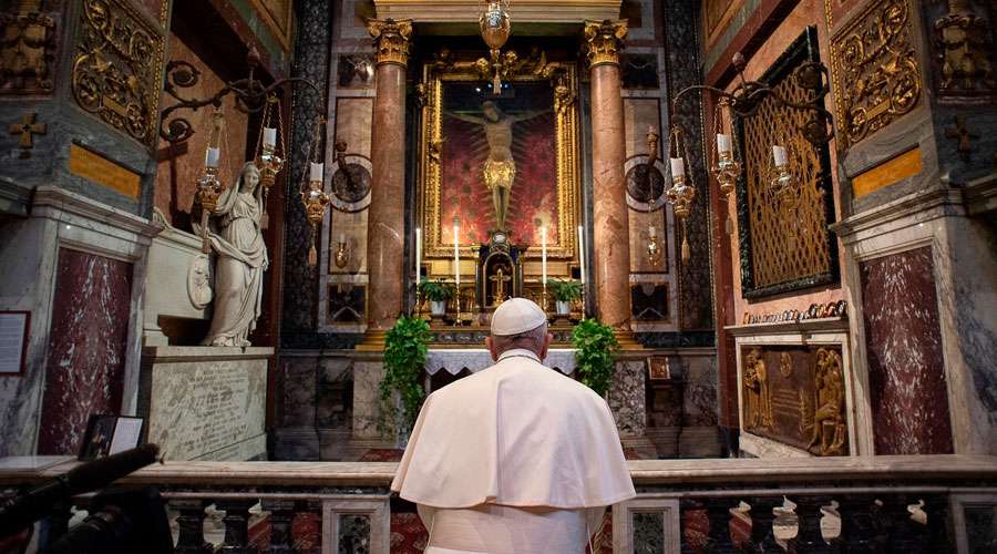 Este domingo por la tarde el Papa Francisco salió del Vaticano para rezar por el fin de la epidemia del coronavirus en la Basílica de Santa María la Mayor y la iglesia de San Marcelo, ante la famosa imagen del Cristo milagroso que salvó a Roma de la peste.
