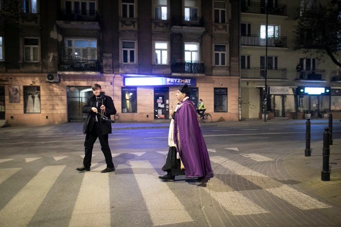 Como Polonia ha limitado las reuniones a 50 personas o menos, suspendiendo la Misa en algunas áreas, el presbítero alentó a los feligreses locales a encender velas y rezar con él desde sus ventanas.